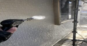 塗装前には、外壁表面に付着した汚れや古い塗膜を落とすために高圧洗浄を実施しました。
