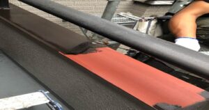 まずは表面に付着した汚れや旧塗膜を落とす工程からスタートします。サビの除去に加え、表面を研磨して細かい傷をつける「目粗し」を行い、塗料の密着性を高めます。